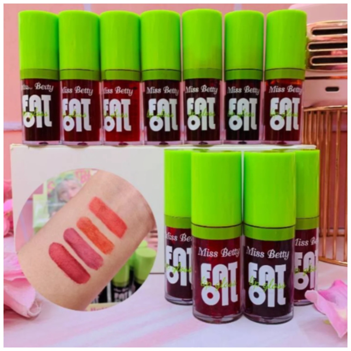 - Set de Tonos: El set incluye varios brillos de labios en una paleta de diferentes colores pastel o matte (tonos claros y fuertes).